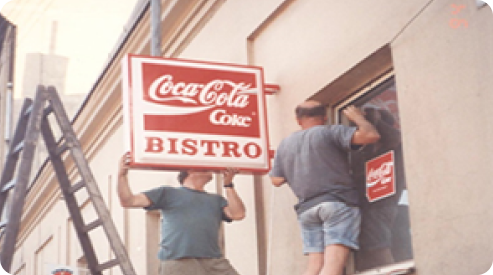Začínáme s prvními instalacemi POS materiálů pro Coca-Colu v Česku.